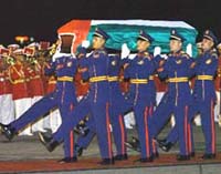 A white Airbus A-319 of the French presidency carrying the coffin of Arafat landed at the airport, and Egyptian First Lady Susan Mubarak and senior Egyptian officials walked to winding stair and shook hands with Suha Arafat, widow of Yasser Arafat.