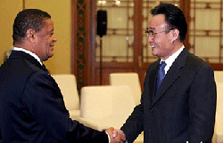 On China- Ethiopia relations, Wu Bangguo noted China hopes to push forward cooperative ties in a continuous manner.