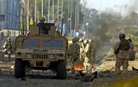 Half an hour earlier, a suicide truck bomb rammed into the security barriers outside the Australian embassy, witnesses said. Two Iraqis were killed and two Australian soldiers were among several people wounded, officials said.