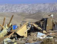 At Neve Erez, an army tractor tore apart two caravans in the uninhabited outpost. Soldiers pulled down a water tower at Amona North but did not touch mobile homes housing some 100 settlers about 200 yards away.