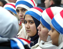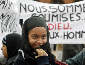 Hundreds of protesters gathered in Paris' Place de la Republic, chanting and carrying placards calling on French President Jacques Chirac's government to reject the ban.