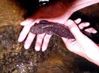 An artificially propagated giant salamander cub is recently put into the Wanlu Reservoir, the largest of its kind in Guangdong Province.