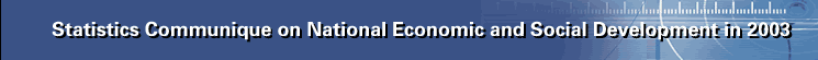 In 2003, the national economy grew rapidly with further improved quality and vitality. Structural adjustment achieved significant progress; steady development was secured in the reform and opening programs. New achievements were registered in science and technology, education, culture, public health, sports and other social undertakings. The living standard of urban and rural households also continued to improve.