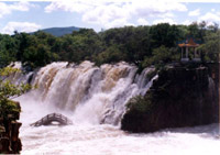 There are a number of sightseeing spots scattered around the lake area. The most attractive of them is the Diaoshuilou Waterfall at the lake?s northern outlet. The waterfall is usually 40 meters wide, and in winter it freezes into cliff-hanging icicles, transforming the fall into a glistening tower of crystal. But in summer, the water crashes down the cliff into a deep pool below with a thunderous roar that can be heard for miles around, while the mists turn the sunshine into rainbows, offering a breathtaking spectacle for both eyes and ears.