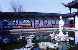 Mochou Hu received its name during the Song Dynasty (AD 960-1279) when, according to local lore, a girl by the name of Mochou lived by the lake with her parents. Her father died unexpectedly and the poor family had no way to finance his burial. But young Mochou chose to sell herself--the sale of girls not an uncommon practice at the time--to raise the necessary funds and thereby fulfill her filial duty. A wealthy man from Jinling (the ancient name of Nanjing) bought her in order to marry his son, but soon after the marriage, Mochou's husband was forced into the army as a conscript and subsequently killed in battle. Mochou, anguished by the deaths of the men in her life, chose to devote herself to a life of welfare work to help others beset by similar misfortunes. Upon her death, the grateful townspeople named the local lake for her. Today, a statue of the Mochou Woman rests in the pond of a Chinese garden next to the Shengqi (Victory-at-Chess) Pavilion.