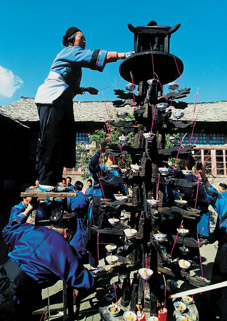 The Tunpu people believe in multiple gods. They worship shrines at home and hold religious rituals every month. To help cope with the changes they faced after being assigned to Guizhou, the ancestors of the Tunpu people became more and more devoted to these gods.