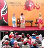 To celebrate the opera day, the Chinese Artists Association of Hong Kong performed two Cantonese operas while famous artists conducted a sing-along session. Other participants included students of the Hong Kong Academy for Performing Arts, numerous Cantonese Opera troupes and operatic organizations plus budding artists from 13 groups taking part in the District Cantonese Opera Parade.
