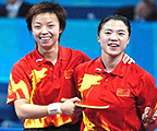 Wang Nan, championne en titre, et Zhang Yining, ont battu vendredi 20 ao?t Lee Eun Sil et Seok Eun Mi de la République de Corée, raflant la médaille d'or du double dames du tournoi de tennis de table des JO d'Athènes. Les Chinoises Guo Yue et Niu Jianfeng ont par ailleurs remporté la médaille de bronze dans cette discipline.