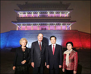 Au nom du gouvernement et du peuple chinois, le président chinois M. Hu a exprimé ses souhaits de bienvenue au président Chirac.