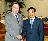 胡主席、米元大統領のブッシュ氏と會見 臺灣問題