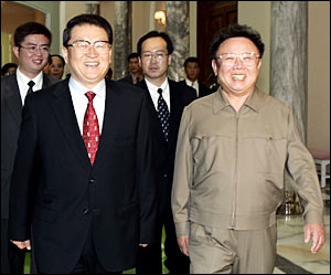 2003年に、中國と朝鮮との友情は両國の指導者の確定した「伝統を継承し、未來に目を向け、善隣友好を保ち、協力を強化する」という方針の導きのもとで引き続き著実な発展をとげた。10月に、呉邦國委員長は中國國家代表団を率いて朝鮮を訪問し、これは中國の新しい中央指導グループと朝鮮の指導者との初めての公式會談であった。中國は朝鮮の核問題で重要な建設的な役割を果たし、前後して北京の3者協議と6者協議の開催を促した。中國と韓國との全面的な協力パートナーシップにも新たな発展がみられた。7月、ノ?ムヒョン韓國大統領が中國を公式訪問した。9月に、呉邦國委員長は韓國を公式友好訪問した。10月には、胡錦濤國家主席、溫家寶総理がそれぞれタイのバンコクとインドネシアのバリ島でノ?ムヒョン大統領と1年內の2回目の會談を行った。