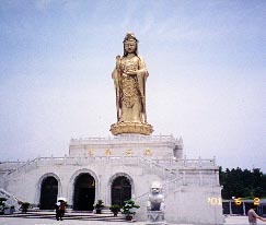 円通大殿には、高さ8.8メートルの観音像が納められている。この観音像は女性の姿をしている。「女性は男性よりも多くの苦しみを受けているので、観音様が女性の姿になって、この世の女性を救いにきられた」とお寺の人は話している。