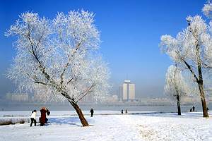 中國4大自然景観の1つ(その他は桂林の山水、長江の三峽、雲南省の石林)に數えられる吉林省の樹氷は、內外の観光客に「この世の絶景」と絶賛されているほどだ。冬。北方にある無數の河川が氷層下であえいでいるなかで唯一、吉林市內を流れる松花江はゆったりとした流れをみせる。その距離は約50キロ。濕潤な流れから立ち昇る霧が寒