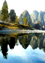 冰峪観光リゾート地は遼寧省荘河市から北へ約40キロ、仙人洞鎮の北部に位置する風光明媚なところ。雲南省の石林、桂林を彷彿させる自然景観に富んでいる。花々が咲き亂れる春、渓水が流れる夏、カエデが色づく秋、雪と氷に包まれる冬。四季折々の姿を楽しませてくれる。