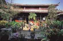 街の西にある獅子山には、木造、五層の樓閣があり「萬古樓」と呼ばれる。上層からは麗江の街が遙かに見渡せ、15キロ離れた玉竜雪山も遠(yuǎn)くに見える。獅子山のふもとに、かなりの規(guī)模の建築群が目に入るが、それは明代以來、この地を支配した土司(土地の少數(shù)民族の指導(dǎo)者に皇帝が與えた世襲の官職)の木氏の官邸だ。清代以降、建物は何度も破壊され無殘な狀態(tài)になっていたが、近年、修復(fù)された。官邸に入ると、まず石の牌坊(鳥居形の門)が目につく。そこには「聖旨」「忠義」と文字が刻まれた二枚のへん額が上下に掲げられている。明の神宗(1573~1620年)の筆と伝えられるもので、當(dāng)時(shí)の土司と中央政権との密接さを見て取ることができる。ただしこの牌坊の原物は「文化大革命」中に破壊されており、今の建物は近年復(fù)元されたものだ。それは確かに一つの代替品にはなっているが、ナーシー族の