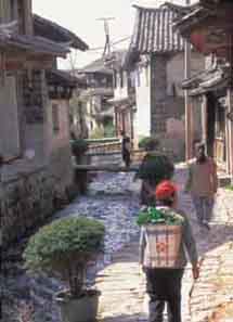 麗江の都が造営されたのは、宋代末から元代初期(13世紀(jì)末)にかけてといわれる。當(dāng)時(shí)、漢語では「大研鎮(zhèn)」と呼ばれ、ナーシー族の言葉では、「グゥベン」とか「イクディ」などと呼ばれていた?!弗ぅ钎!工趣辖证蛄鳏欷虢鹕辰吾岜车?、というような意味、「グゥベン」は米倉、つまり米の集散地という意味だという。明代初期(14世紀(jì)中ごろ)には、麗江は相當(dāng)な規(guī)模の都となり、雲(yún)南、四川、チベット一帯の交通の要所だった。清代以降、17世紀(jì)中ごろには、麗江は雲(yún)南西北部の物資の集散地として、重要な役割を果たすようになっていた。また歴史の一時(shí)期、インドからチベット、雲(yún)南一帯に向かう隊(duì)商たちの通路となっていたこともある。険しい山岳地帯を移動(dòng)するこうした隊(duì)商は馬を連ねたもので、主に茶の取引きをしていた。彼らの移動(dòng)したルートは「茶馬古道」とも呼ばれるが、麗江は、彼らにとっても重要な街だったのだ。