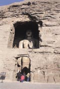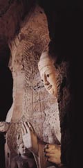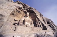 山西省の省都大同市の中心から西へ16キロ、武周山の南麓に位置する雲(yún)崗石窟は、一大仏像彫刻群。北魏の興安二年(453)に造営が始まり、大部分は北魏が洛陽(yáng)に遷都する以前の494年に完成したが、正光年間(520~525年)まで彫像は続いた。山に沿って石窟をうがち、東西の長(zhǎng)さは約1キロ。現(xiàn)在、主要な洞窟は45、龕(がん?廚子)は大小合わせて252、石仏は5萬1000體を超えており、最大のもので17メートル、最小はわずか數(shù)センチほど。雲(yún)崗石窟は甘粛省敦煌の莫高窟、河南省洛陽(yáng)の竜門石窟と並んで「中國(guó)3大石窟群」と呼ばれ、世界に知られる石仏蕓術(shù)の寶庫(kù)の1つ。