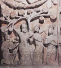 第18窟は、「3世仏」を題材に造営。釈迦が主尊で、過去像と未來像がその両側(cè)にいる。3體の間にそれぞれ1體の菩薩仏がある。その上方に釈迦の10大弟子である弟子像が5體ずつ彫られており、頭部は壁面から離れているが、體と下肢は少しずる壁に埋もれている。こうした安置方法は、インド仏教?ガンダーラ蕓術(shù)の影響を直接受けたもので、雲(yún)崗石窟では數(shù)少ない。