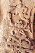 第8窟は、窟內(nèi)の両側(cè)に孔雀に乗った5頭6臂の鳩摩羅天像、東側(cè)には牛にまたがった3頭8臂の摩醯(けい)羅天像が彫られていて、この種の彫像は雲(yún)崗石窟では極めて珍しい。