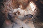 なかでも特色に富むのが、第3窟だ。最大規(guī)模の石窟で、斷崖の高さは25メートル。中部から上に12の方形の孔がうがたれている。石窟は前室と後室に分かれ、後室には1體の仏像と2體の菩薩像が安置されており、両頬はふくよかでみずみずしく、姿態(tài)は豊満で形態(tài)は自然、衣服の文様は流れるようで、彫刻手法から判斷して、隋唐時(shí)代の作品だとされている。