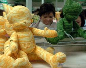 日本で開催中の「愛?地球博」(愛知萬博)の會場で、すばらしい商品が多數販売されている。愛知萬博の公式キャラクター「モリゾー」と「キッコロ」のぬいぐるみなど、多くの商品に「中國製」のラベルが付いている。