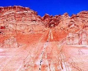新疆ウイグル自治區(qū)吐魯番(トルファン)市の火焔山に2日、長さ660メートルに達(dá)する梯子(はしご)の登山道が完成した。観光客は梯子伝いに火焔山に登り、火焔山の壯大な景色を一望することができる。登山道は火焔山の山體表面に長さ6メートルの木製梯子110本を連ねて作られた。