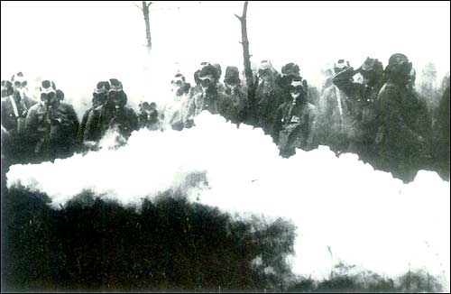 1939年3月の南昌攻防戦中、大量の「赤」毒ガスを撒布する日本第11軍団