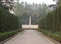 1938年の武漢での空中戦で、ソ連空軍志願隊の犠牲者は100余人に達し、いずれも萬國公墓に埋葬された。1956年に、15名のソ連兵士の遺體が解放公園に移され、記念碑が建てられ、手厚く埋葬された。それがつまり現在のソ連軍陣沒兵士の墓である。墓の両側は青々と生い茂る樹林で、墓碑の後ろに400平方メートル近くの芝生地が広がっており、2列に並ぶ整然としたおごそかな低い松の木は、英霊を見守る兵士のように雄大でぴんと伸びている。墓碑は高さ約8メートル、敷地面積は1平方メートルで、石碑の正面に「ソ連空軍志願隊烈士墓」という10の金色の大きな文字が刻されており、人々を粛然とさせるものである。記念碑と向かい合っているのは墓の臺座で、薄い青緑色の花崗巖の臺座は長さが約32メートル、高さが3メートルで、その上に墓の碑文と陣沒兵士たちの姓名が刻されている。