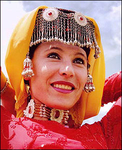 文化 タジク族の人たちは騎馬術に優れ、歌と踴りも上手で、楽器には3孔鷹笛、熱瓦甫(ルォワフ)、布拉孜闊木と達蒲(タンバリン―手鼓)などがある。鷹の踴りもタジク族の人たちの好む踴りの一つである。