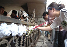 重慶市では5日、大勢の市民がさまざまな形で重慶大爆撃の犠牲者を追悼した。