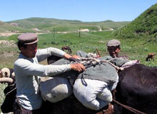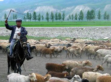 夏に入り、新疆ウイグル自治區は放牧地移動の時期を迎えている。草原の緑が茂るのに合わせ、生活必需品を攜えた多數の遊牧民が、馬、牛、羊を操りながら、春の放牧地から夏の放牧地へ移動し、テントを設置する。悠々とした遊牧民と家畜の行進は、草原獨特の風物詩だ。