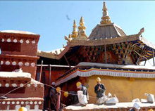 この殿閣は300年以上の歴史を持つ。布達(dá)拉宮の紅宮(ポタン?マルポ)1階中央の西大殿の西側(cè)に位置し、建築面積は約450平方メートルあまり。外観は4階に分かれているが、內(nèi)部は高さ11.27メートルの吹き抜けになっているため、修繕には高い技術(shù)が要求される。関連部門(mén)は修繕工事に當(dāng)たり、実地調(diào)査と考証を繰り返して厳密かつ科學(xué)的な修繕プランを決定した。工事は7月中にすべて完了する見(jiàn)通し。