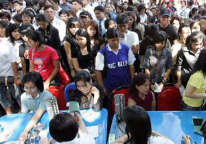 寫真(中):スマトラ大地震?インド洋大津波の被災者のために獻血に駆けつけた人々=タイ?バンコクで2004年12月29日撮影