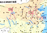 「南水北流」(南部の水を北部へ引く)構想は20世紀50年代いらいうち出された、中國の北部地區の水不足の問題を解決するインフラ建設プロジェクトである。「南水北流」プロジェクトに対し、水利部を含む多くの部、省(直轄市、自治區)、科學研究?教育部門は長期にわたって探査、研究、フィージビリティースタディを行った上、50余りの案をまとめ、「南水北流」プロジェクトの全般的計畫をうちだした。この計畫によると、長江の下流、中流、上流から水を引き、北部に送る東、中央、西の三本のルートがつくられることになっている。この三本のルートによって長江、黃河、かい河、海河の流域にまたがる「東西4本南北3本」の全般的な枠組みが形成される。それによって、中國の水資源の最適化配置が実現できる。黨中央、國務院は「南水北流」プロジェクトの計畫策定を非常に重視し、社會各界もそれに関心を寄せている。中國の「國民経済と社會発展第10次五カ年計畫要綱」は「『南水北流』プロジェクトの準備作業を速め、できるだけ早く実施する」と指摘している。
