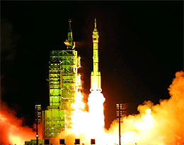──有人宇宙飛行 中國が獨自で開発した「神舟4號」宇宙船が2002年12月30日、酒泉衛星打ち上げセンターから打ち上げられた。これは中國の有人宇宙飛行の4回目の打ち上げ実験(第1回は1999年11月、第2回は2001年1月、第3回は2002年3月)であり、「長征二號F」運搬ロケットを使って打ち上げをおこない、その技術狀態は有人宇宙船と基本的に一致したものであった。1992年に有人宇宙飛行プログラムが確定されてから、中國の宇宙飛行科學研究部門は大量の技術的難関を攻略した。今後、中國は數多くの無人飛行船を打ち上げ、その基礎を踏まえて有人宇宙飛行を実施することになっている?,F在、宇宙飛行士の育成トレーニングも計畫どおりにすすめられている。
