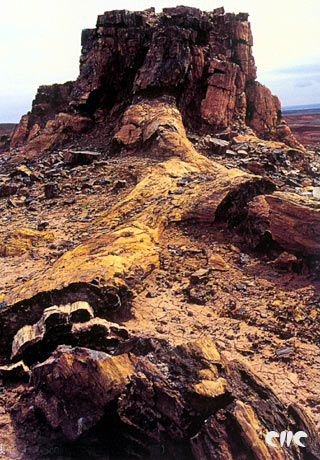 吉木 薩爾(ジムサル)と奇臺(チタイ)の県境にある けい化の木