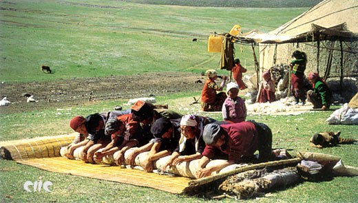 フェルトを作るキルギス族の人たち?クズルーソキルギス自治州で