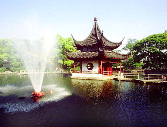 Беседка в центре озера в Западном саду