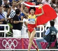 Xing Huina de China gana oro en 10,000m femenil en JJOO de Atenas