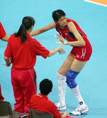 Zhao, quien había sido puesta en la banca después de que se fracturó la pierna derecha a finales de marzo, comenzó con el equipo chino, pero abandonó la cancha debido al dolor, cuando China triunfaba 2-1 en el set inicial.