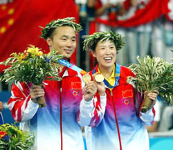 Sin embargo, los favoritos para el oro de los dobles mixtos después de que los invencibles Kim Dong Moon/Ra Kyung Min fueran eliminados en los cuartos de final, enfrentaron una fuerte resistencia de la pareja británica en la Sala Olímpica Goudi llena de gritos y aplausos de espectadores europeos, y se rindieron en el segundo set.