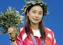 Su compa?era en clavados sincronizados, Wu Minxia, cuatro a?os menor, terminó en segundo lugar con 612.00 puntos.