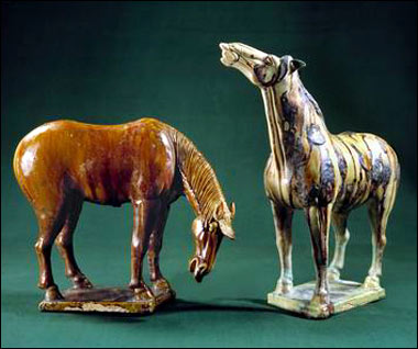 Los colores de la Cerámica Barnizada Tricolor de la Dinastía Tang son cálidos y suntuosos, mientras que los de la porcelana Jun de la dinastía Song, como crepúsculo vespertino, son profundos y suntuosos. La porcelana Doucai y la de color azul de la dinastía Ming (1368-1644) llevan colores exuberantes: Los colores de la primera tienen fuertes contrastes, en tanto que los de la segunda, aunque simples, se dan en líneas y vetas densas. En la porcelana de la serie negra de la dinastía Song, los colores y vetas que se presentan como “gotas de aceite”, “pelos de conejo” y “l(fā)ágrimas de carey”, lejos de ser superficiales, permiten a la gente contemplarlos con todo gusto y detalle.
