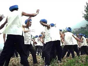 En general, de esta danza hay dos tipos. La del primer tipo se baila con arte marcial y conlleva una docena de movimientos difíciles y vigorosos, incluyendo “el tigre abraza la cabeza”, “el hombre pega” y “el buey friega la piel”, adecuados sólo a los jóvenes fuertes. Se presenta para dar el parabién en recuerdo del anciano que “se fue andando” y que tiene muchos hijos y nietos. La danza del otro tipo se caracteriza por el “llanto de duelo”. El movimiento principal es el de “cuatro pasos grandes”, de ritmo lento y de canto tan lúgubre, que entristece a todos. Habitualmente se baila cuando muere un joven.