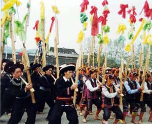 Los dongs del distrito de Sanjiang de la prefectura de Liuzhou, Guangxi, acostumbran celebrar actividades de recreo grandes y variadas cada 3 del tercer mes del calendario lunar.