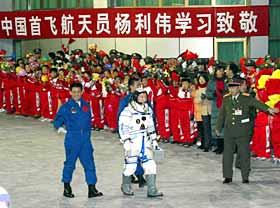 Con la puesta en órbita de la nave espacial tripulada "Shenzhou V", a unos 300 kilómetros de distancia de la Tierra, en la ma?ana de hoy miércoles, el teniente coronel Yang Liwei, de 38 a?os de edad, cuyo nombre se mantuvo en secreto hasta las 5:00 horas, se ha convertido en el primer astronauta de China.