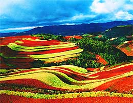 China tiene 130.040.000 hectáreas de tierras cultivadas, concentradas sobre todo en las llanuras del Nordeste, del Norte de China, de los Cursos Medio e Inferior del Changjiang, en el delta del Zhujiang y la cuenca de Sichuan. La llanura del Nordeste es la mayor de China, con una superficie de 350.000 kilómetros cuadrados. Gran parte de esta llanura es de suelo negro y fértil. En ella abundan el trigo, el maíz, el sorgo, la soya, el yute y la remolacha. En la llanura del Norte de China la tierra cultivada, parda, tiene una gran profundidad y produce trigo, maíz, mijo y algodón. La llanura de los Cursos Medio e Inferior del Changjiang está colmada de lagos, lagunas, ríos y riachuelos, y tiene fama de “tierra de los peces y del arroz”, por ser principal productora de arroz y peces de agua dulce y, además, es rica en té y gusanos de seda. La cuenca de Sichuan, calificada de “país del palacio celestial”, tiene tierras moradas y clima templado húmedo, y en las cuatro estaciones favorece el crecimiento de cultivos, entre los que destacan el arroz, la colza y la ca?a de azúcar. El delta del río Zhujiang es rico en arroz, del que se obtienen dos o tres cosechas al a?o.