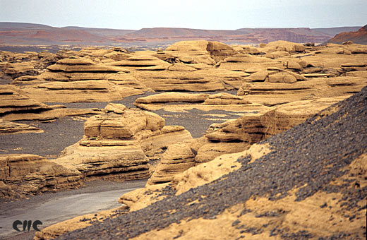 Suelo de geomorfología yardang en Toksun, en la depresión Turpan